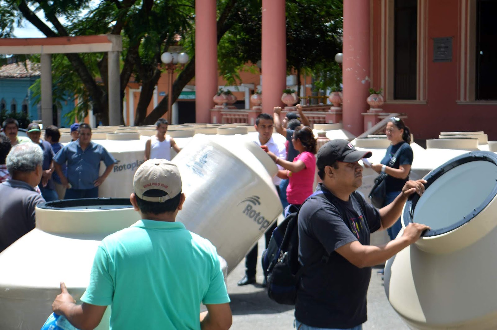Teocelo; Ver. 8 de agosto de 2018.- Insumos bajo subsidio para toda la ciudadanía, sin distinción social, ni de colores partidistas, abiertos a todo el municipio de Teocelo y de sus comunidades, así se dejó ver la segunda entrega de 114 Tinacos de la marca Rotoplas, con la capacidad de 1100 litros, con las características de tricapa reforzado, a un costo menor (casi al 50%) que en cualquier casa comercial.